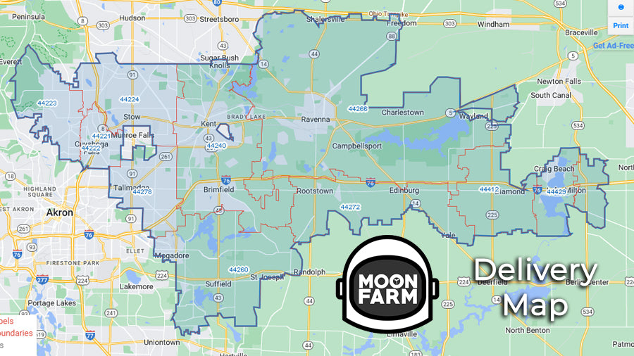 We deliver to: 44240, 44266, 44221, 44224, 44412, 44222, 44223, 44278, 44260, 44272, 44429, 44444, 44236, 44451 If you are unsure, please email CSA@moonfarm.us